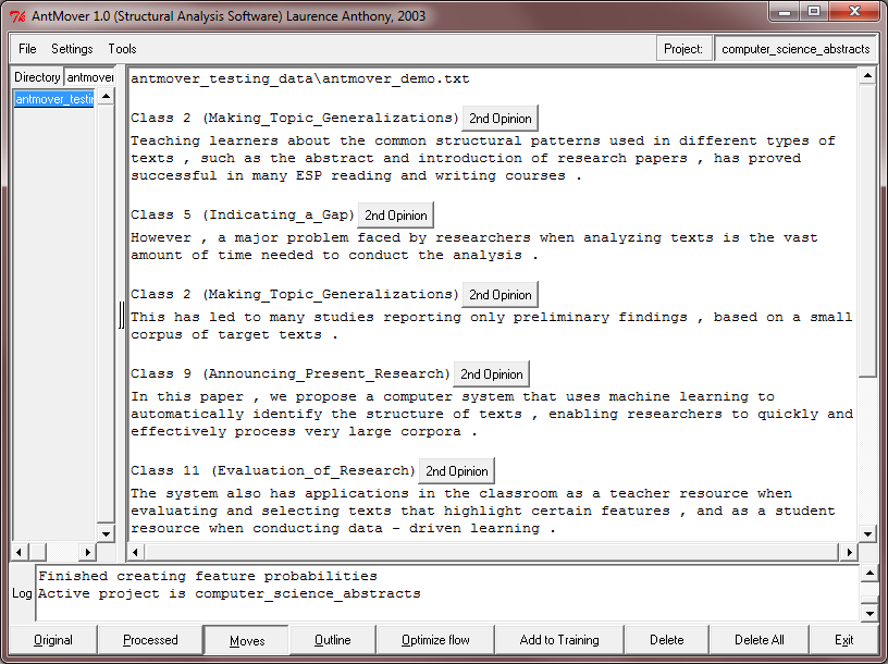 A freeware text structure (moves) analysis program.