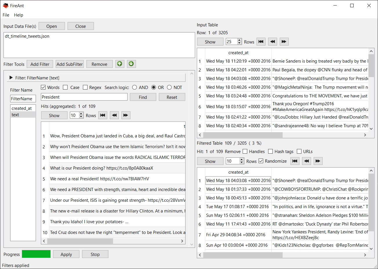 FireAnt (Filter, Identify, Report, and Export Analysis Toolkit) is a freeware social media and data analysis toolkit with built-in visualization tools including time-series, geo-position (map), and network (graph) plotting. Note that Twitter data collection is not currently available due to recent changes in Twitter policies.